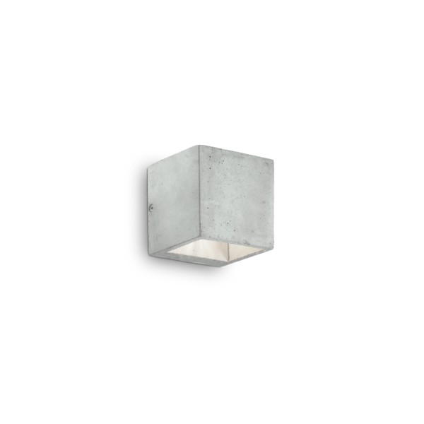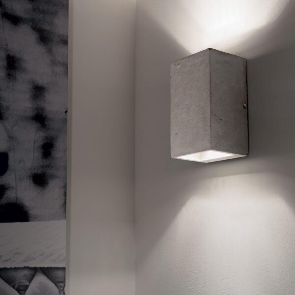 Corpo luce interamente in vero cemento con supporto metallico interno.