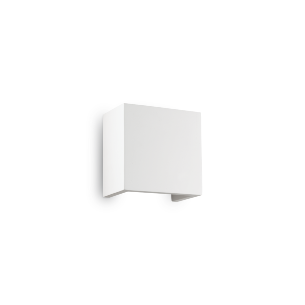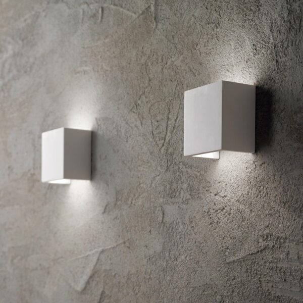 Base in metallo smaltato. Corpo luce interamente in gesso. Doppia emissione luminosa: sopra e sotto.