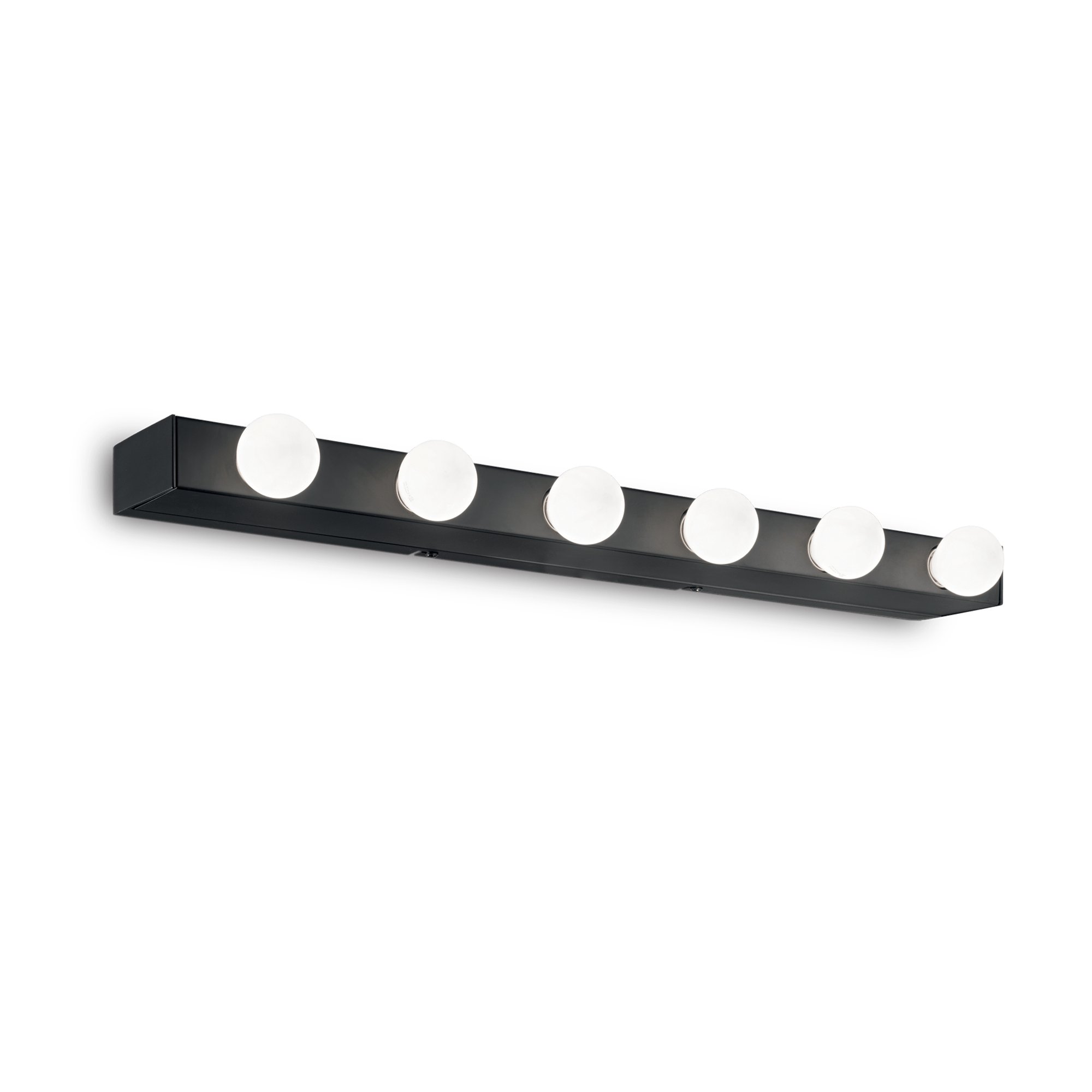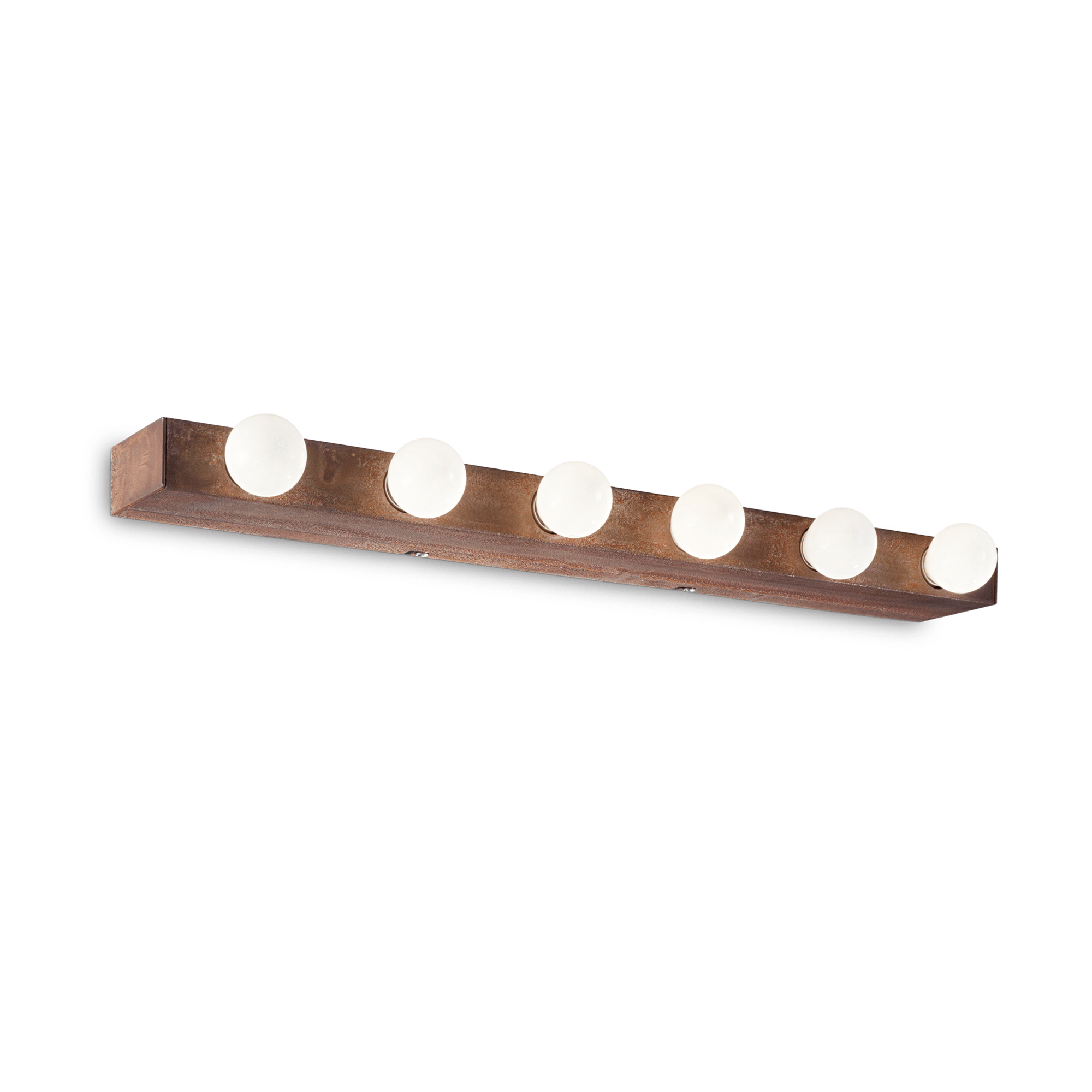 Corpo luce interamente in metallo con varie finiture. L’assenza di diffusore consente di montare una vasta gamma di lampade con attacco E14.