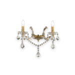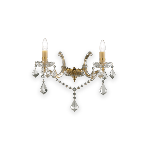 Montatura in metallo con elementi decorativi in vetro. Pendagli con ottagoni e gocce finali in cristallo molato. Disponibile nelle versioni con vetro trasparente e metallo dorato o cromato.