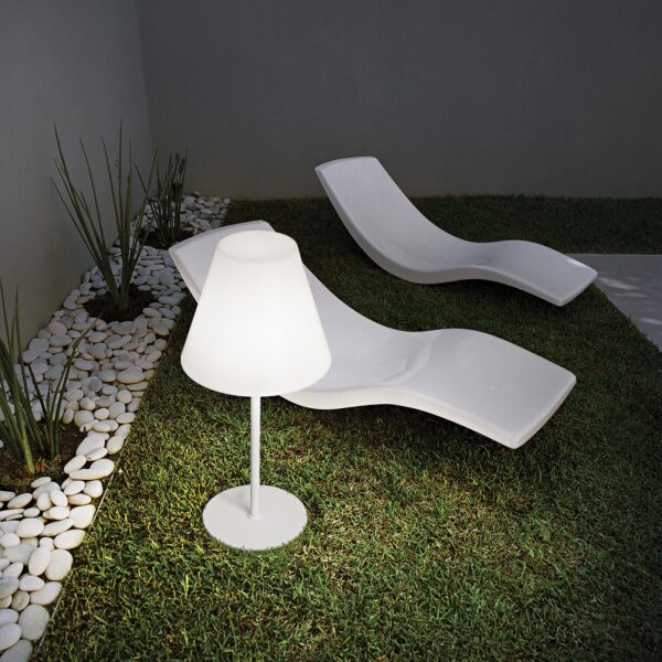 Base e stelo in metallo verniciato a polveri di colore bianco. IP44