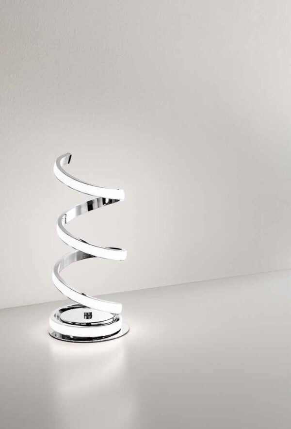 Lampada da tavolo in metallo e alluminio finitura cromo lucido