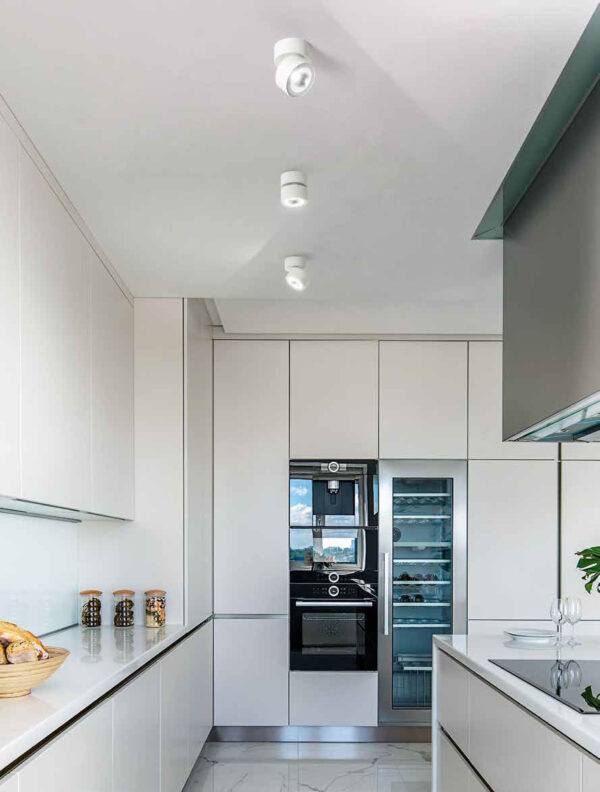 Faretto cilindrico in metallo verniciato a polvere colore bianco opaco, nero opaco con corpo luce orientabile (rotazione e inclinazione)