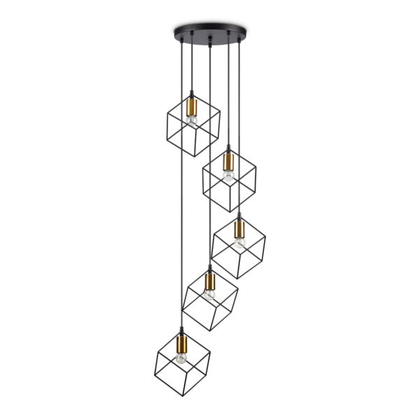 Rosone e montatura in metallo verniciato bianco o nero opaco. Copri porta lampade in metallo rifinito ottone satinato. Cavo elettrico in pvc.