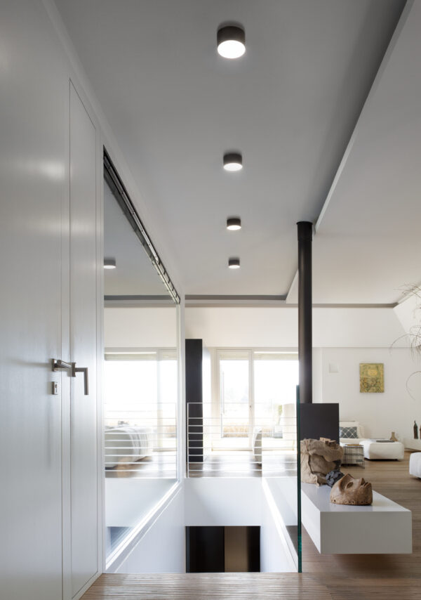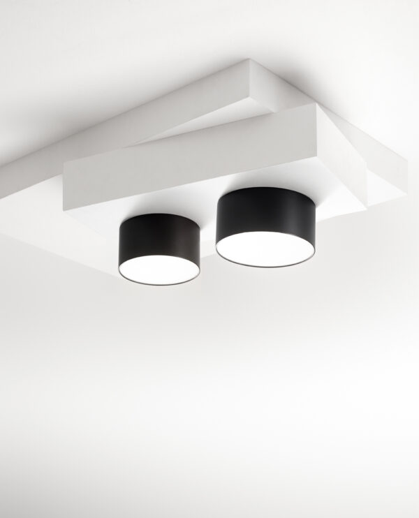 Plafoniera con struttura in alluminio. Finitura in nero opaco.