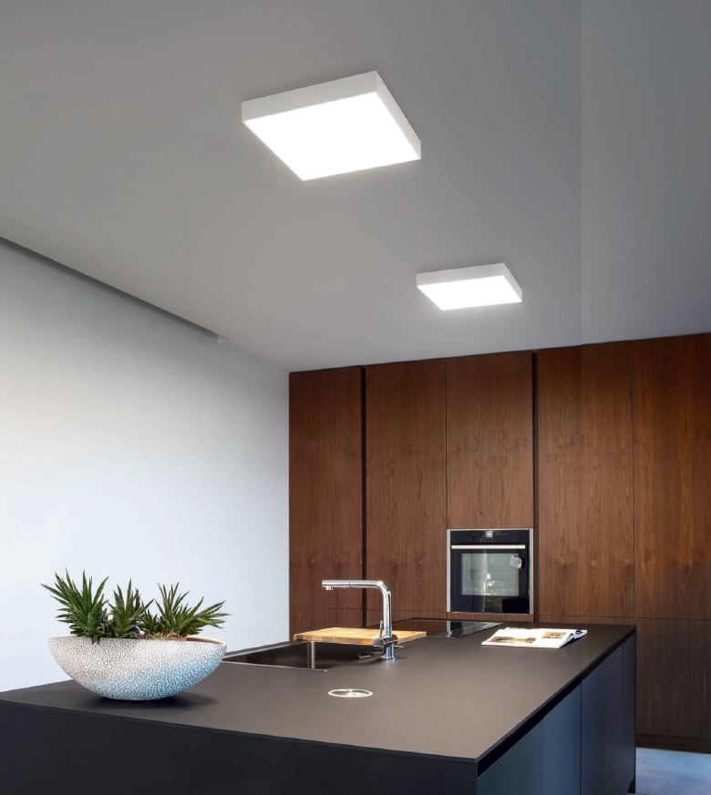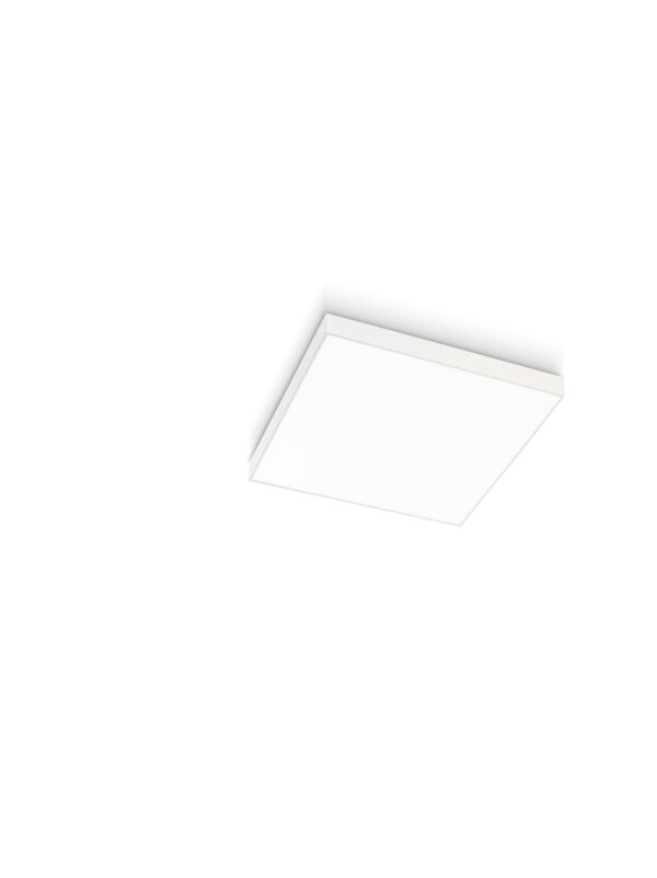 Plafoniera con struttura in alluminio. Finitura in bianco opaco. Diffusore in metacrilato. Modulo LED e trasformatore inclusi.