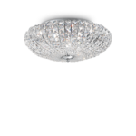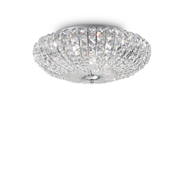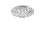 Montatura in metallo cromato. Elementi decorativi di cristallo molato in forma di perle e quadrati di varie misure.
