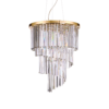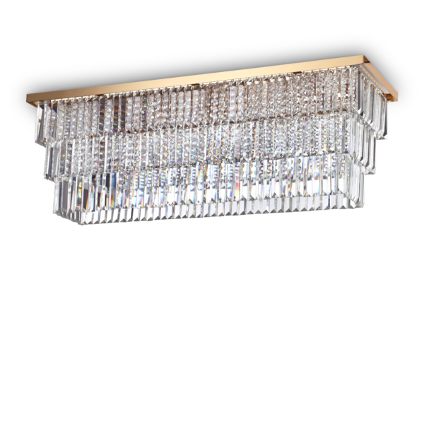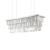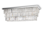 Montatura in metallo cromato o dorato. Elementi decorativi con catene di ottagoni e barre in cristallo molato trasparente.