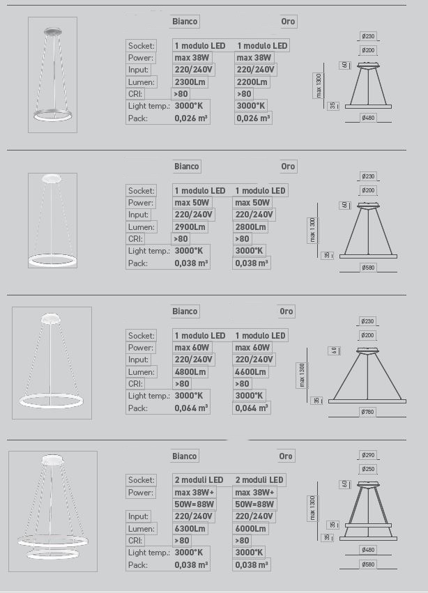 | Dimensione | Ø 48cm, Ø 58cm, Ø 78cm, Ø 58cm + 48cm |