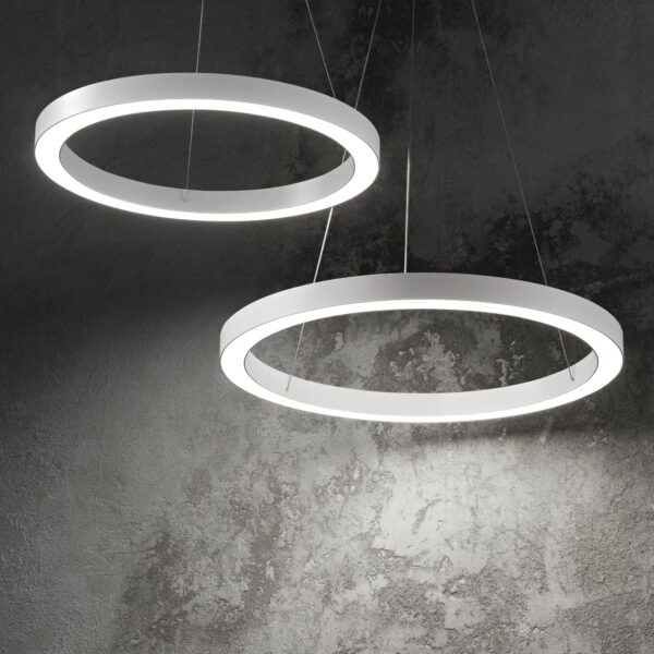 Rosone e corpo luce in alluminio verniciato a polveri di colore bianco o nero.
