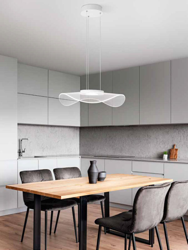 Sospensione in metallo verniciato a polvere colore bianco opaco