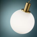 Montatura in metallo con finitura ottone satinato. Diffusore in vetro incamiciato bianco, soffiato e acidato.