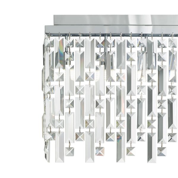 Montatura in metallo. Elementi decorativi a prisma in cristallo molato trasparente nella versione cromo, ambra in quella ottone.